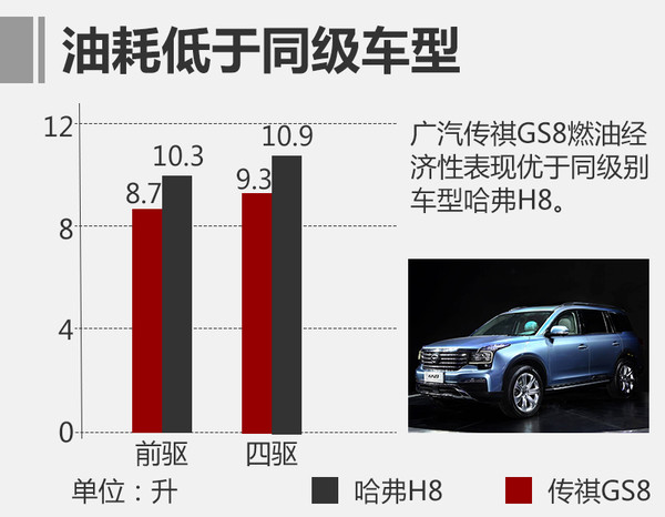 新車定位于中大型SUV,上市后將與哈弗H8等車型處于同一級別。油耗方面,通過與哈弗H8對比后發(fā)現(xiàn),新車兩驅與四驅車型在燃油經(jīng)濟性方面均具備一定優(yōu)勢。