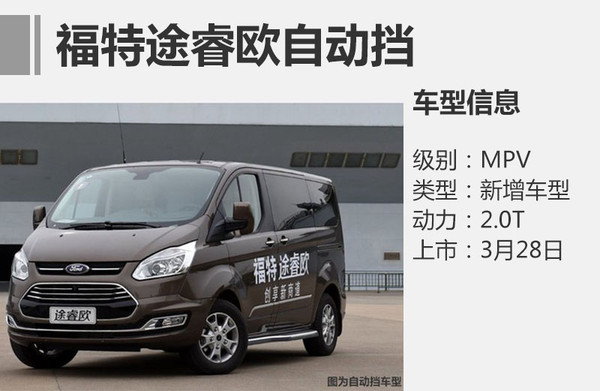 途睿歐自動擋外觀延續(xù)現(xiàn)款手動擋車型,倒梯形鍍鉻格柵。車身雙側均采用側滑門設計,并配備腳踏板。內飾部分,新車配備了多功能方向盤,中控臺的上半部分為7英寸液晶顯示大屏,并采用觸摸式操作。此外,新車最大的變化在于方向盤右側換裝全新自動變速箱。