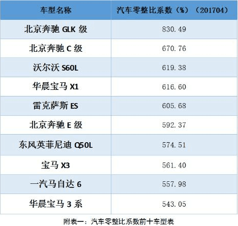 對(duì)于老百姓而言,在得知北京奔馳 GLK級(jí)配件的價(jià)格總和可以買 8輛整車時(shí),可能也僅僅是增添了對(duì)這部分車主的“羨慕”,然而,奔馳寶馬在我國(guó)說到底本就不是平民車。那么,我們就來(lái)看看 2017年一季度賣得最好的幾個(gè)品牌車型的零整比系數(shù)如何,下面的數(shù)據(jù)對(duì)你買車真的有幫助呦!