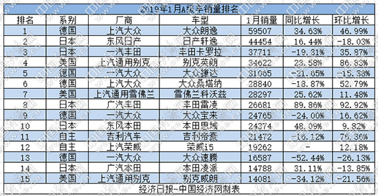 此外,一汽-大眾旗下A級(jí)車(chē)也未能接受住考驗(yàn)。首先是捷達(dá)1月僅銷售3.1萬(wàn)輛,同環(huán)比降幅均在10%以上,排名也從第三位掉至第五位;其次,去年完成換代的寶來(lái)一直沒(méi)有恢復(fù)巔峰狀態(tài),今年1月雖然環(huán)比有所上升,但同比卻出現(xiàn)大幅下滑,僅位于榜單第九位;最后,以往穩(wěn)定在2萬(wàn)輛以上的速騰,1月銷量慘遭腰斬,直接跌出榜單之外。據(jù)工作人員介紹,速騰銷量不佳主要是換代前部分客戶選擇持幣待購(gòu),而新款車(chē)型將在3月左右上市,新車(chē)上市后有望重返巔峰。