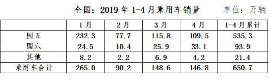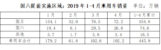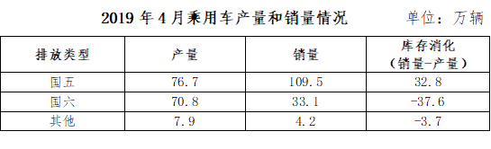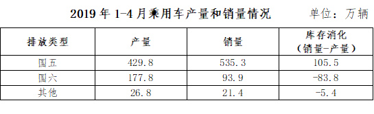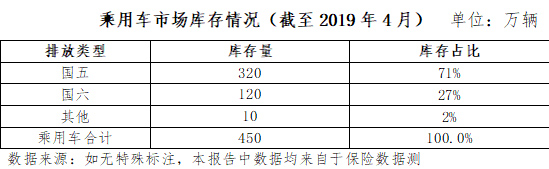 中汽協(xié)發(fā)布的數(shù)據(jù)顯示, 截至2019年4月份,我國(guó)乘用車庫(kù)銷比達(dá)3.1,遠(yuǎn)高于行業(yè)1.5的警戒線;行業(yè)整體庫(kù)存約450萬(wàn)輛,國(guó)五車輛庫(kù)存320萬(wàn)輛左右(占行業(yè)庫(kù)存的71%),其中國(guó)六提前實(shí)施區(qū)域的國(guó)五車輛庫(kù)存175-220萬(wàn)輛(調(diào)研企業(yè)推算得出)。