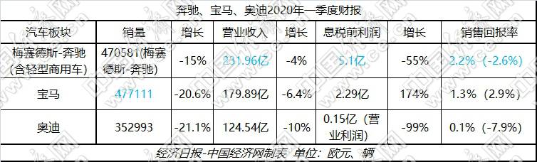 對比來看,寶馬雖未像奔馳一樣受到過多額外因素的影響,但疫情對其帶來沖擊依然不容小覷。一季度,寶馬汽車板塊銷量同比降幅超過兩成,營業(yè)收入也有著6.4%的下滑;不過,由于去年一季度14億歐元反壟斷撥備金的“特別項(xiàng)目”,導(dǎo)致基數(shù)較低,寶馬今年一季度的息稅前利潤以及銷售回報(bào)率均實(shí)現(xiàn)正向增長。