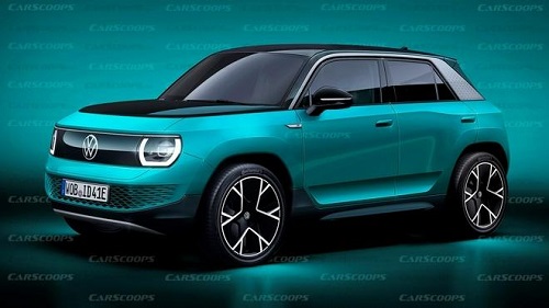 從曝光的效果圖(上圖)來看,新車前部采用了黑色封閉式格柵;更傳統(tǒng)的前大燈則通過圓形LED圖案給人以強(qiáng)烈的甲殼蟲氛圍;保險(xiǎn)杠則采用類似于ID.3的多孔圖案進(jìn)氣口及鋁材防撞板;增大的離地間隙也讓整車看起來更具越野外觀。