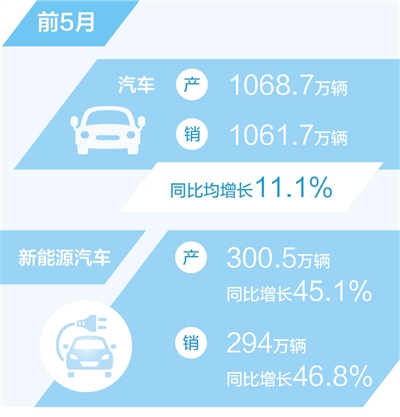 | 前5月新能源汽車出口45.7萬輛 同比增長1.6倍 |
