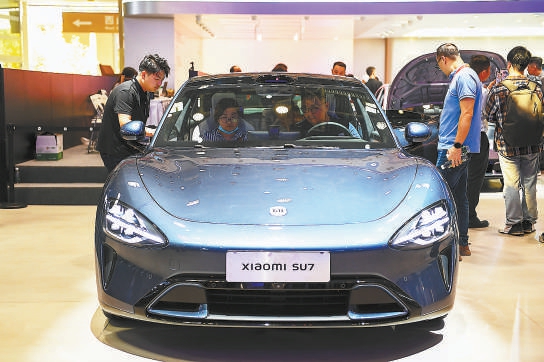 北京車企推出多款新車,小米汽車展臺(tái)人氣爆棚。北京晚報(bào)記者 潘之望 攝