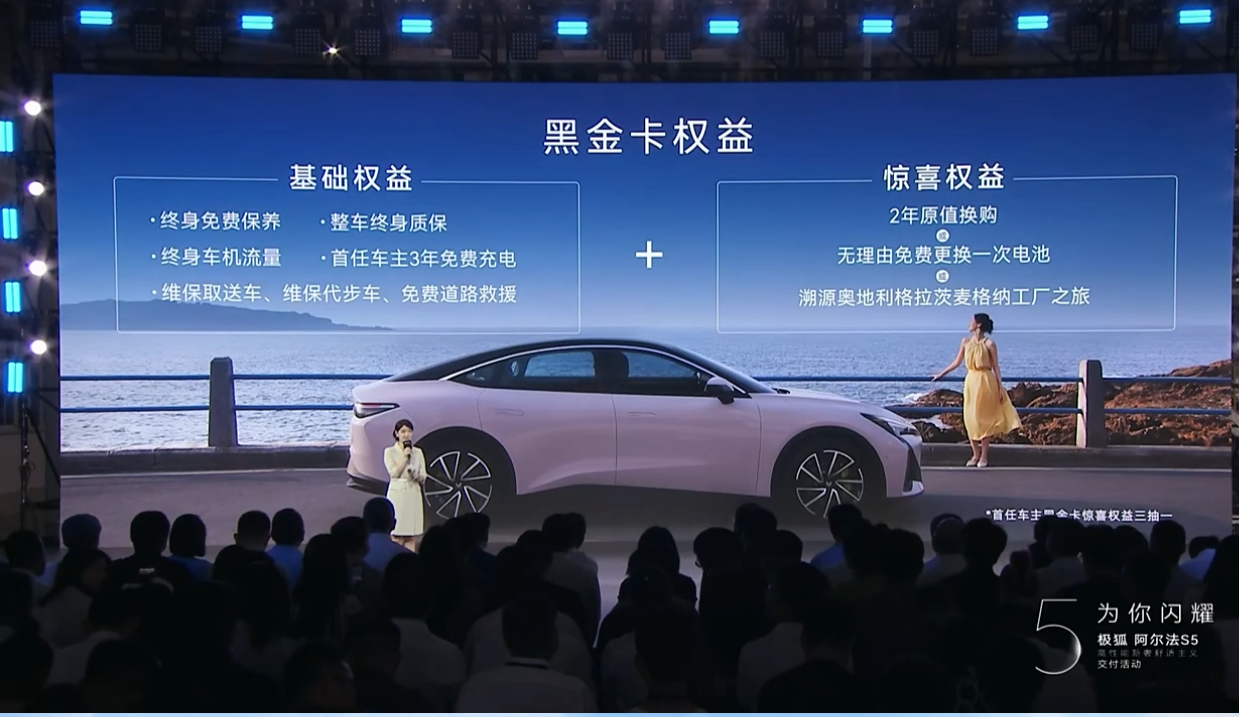 阿爾法S5交付的同時,“三巨頭”還為首批用戶帶來價值不菲的黑金卡權益,包括終身免費保養(yǎng)、首任車主3年免費充電、免費道路救援,以及2年原值換購、無理由免費更換一次電池、溯源奧地利格拉茨麥格納工廠之旅等實打?qū)嵉暮枚Y,并且此后還將定期抽取幸運用戶持續(xù)發(fā)放黑金卡權益,開創(chuàng)汽車行業(yè)交付價值感的新境界。