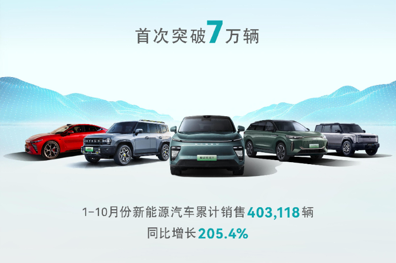 奇瑞控股集團(tuán)發(fā)布10月銷量快報(bào),集團(tuán)總銷量272,155輛,同比增長35.9%,其中新能源銷量71,330輛,同比增長342.1%,首次突破7萬輛大關(guān),創(chuàng)造單月新能源銷量歷史新高。