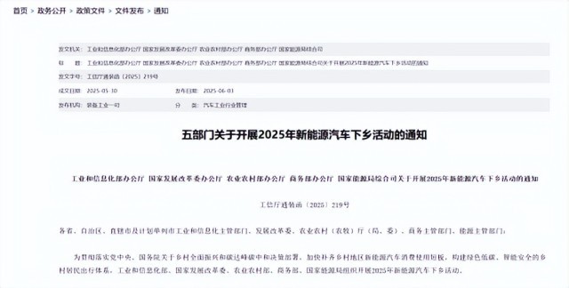 【環(huán)球網(wǎng)財經(jīng)綜合報道】6月3日,工業(yè)和信息化部等五部門聯(lián)合發(fā)布通知,開展2025年新能源汽車下鄉(xiāng)活動,以補(bǔ)齊鄉(xiāng)村新能源汽車消費短板,構(gòu)建綠色出行體系。