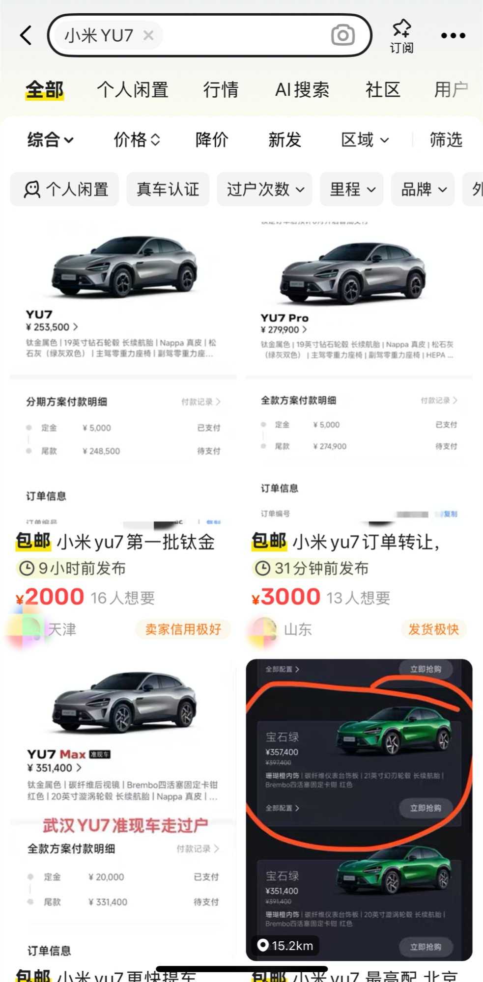 (二手平臺(tái)搜索YU7截圖)