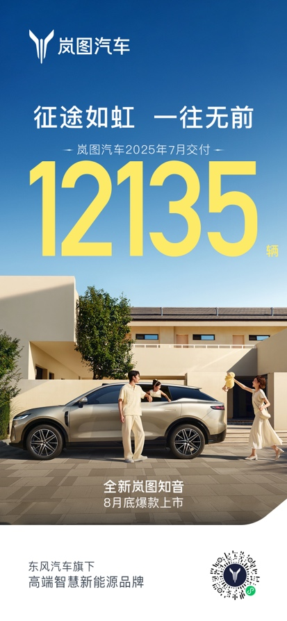嵐圖汽車(chē)CEO盧放表示:“在用戶(hù)的支持下,嵐圖汽車(chē)7月延續(xù)高質(zhì)量發(fā)展態(tài)勢(shì),嵐圖夢(mèng)想家穩(wěn)居銷(xiāo)量冠軍,全新上市的嵐圖FREE+也快速獲得市場(chǎng)認(rèn)可,這進(jìn)一步堅(jiān)定了我們的發(fā)展信心。8月,我們將更進(jìn)一步提速生產(chǎn)交付、升級(jí)服務(wù)體驗(yàn)、加強(qiáng)用戶(hù)交流,并推出新產(chǎn)品——全新嵐圖知音,為用戶(hù)帶來(lái)更多優(yōu)質(zhì)選擇,為品牌發(fā)展注入更強(qiáng)動(dòng)能?!?/p>