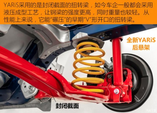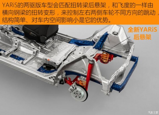 對(duì)于這些尺寸小巧的車型來說,提高車內(nèi)的空間利用率非常的重要,日本工程師往往非常擅長這一點(diǎn)。在全新YARiS(兩驅(qū)版)和飛度都選擇了前麥弗遜+后扭轉(zhuǎn)梁的懸架結(jié)構(gòu),這是綜合性能和空間因素后最合理的設(shè)計(jì)方案。