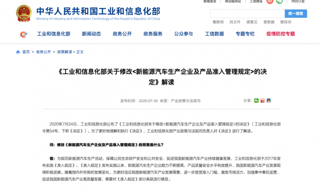 人民網(wǎng)北京7月30日電(王紫)7月30日,記者從工業(yè)和信息化部官網(wǎng)獲悉,為更好適應(yīng)我國新能源汽車產(chǎn)業(yè)發(fā)展需要,工業(yè)和信息化部發(fā)布關(guān)于修改《新能源汽車生產(chǎn)企業(yè)及產(chǎn)品準(zhǔn)入管理規(guī)定》的決定,降低了新能源汽車生產(chǎn)企業(yè)準(zhǔn)入門檻。