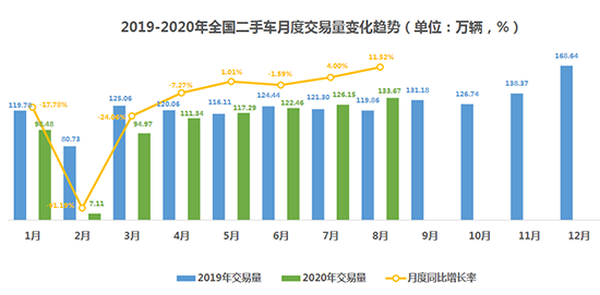 相比新車市場,二手車市場表現(xiàn)不俗。8月,全國二手車市場交易量為133.67萬輛,環(huán)比增長5.96%,同比增長11.52%。中國汽車流通協(xié)會(huì)信息部主任李鑫表示,8月,二手車市場延續(xù)了“淡季不淡”的態(tài)勢(shì),銷量迎來年內(nèi)的新高。其原因在于,進(jìn)入第三季度,各行業(yè)逐漸開始進(jìn)入旺季,上半年受疫情影響積壓的消費(fèi)需求逐步開始釋放,二手車市場表現(xiàn)好于預(yù)期。
