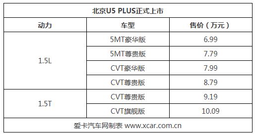| 北京U5 PLUS正式上市 售6.99-10.09萬元 |