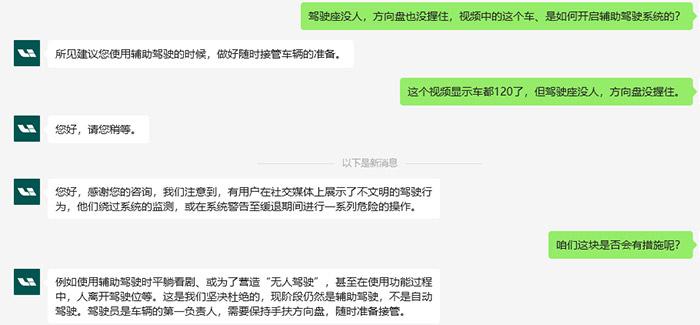 對(duì)此,理想汽車客服客服表示,例如使用輔助駕駛時(shí)平躺看劇、或?yàn)榱藸I造“無人駕駛”,甚至在使用功能過程中,人離開駕駛位等,這是我們堅(jiān)決杜絕的,現(xiàn)階段仍然是輔助駕駛,不是自動(dòng)駕駛。駕駛員是車輛的第一負(fù)責(zé)人,需要保持手扶方向盤,隨時(shí)準(zhǔn)備接管。