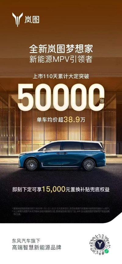 成功并非偶然,卓越的產(chǎn)品實(shí)力才是熱銷的根本。全新嵐圖夢(mèng)想家是全球首款搭載華為乾崑智駕ADS 3.0和鴻蒙座艙的MPV產(chǎn)品,憑借在智能駕駛、底盤舒適性、主被動(dòng)安全、豪華體驗(yàn)等全維度的優(yōu)勢(shì),贏得眾多消費(fèi)者的認(rèn)可與青睞。此外,全新嵐圖夢(mèng)想家單車均價(jià)超38.9萬,不僅推動(dòng)嵐圖汽車實(shí)現(xiàn)量價(jià)齊升,更進(jìn)一步推動(dòng)中國新能源MPV向上發(fā)展。