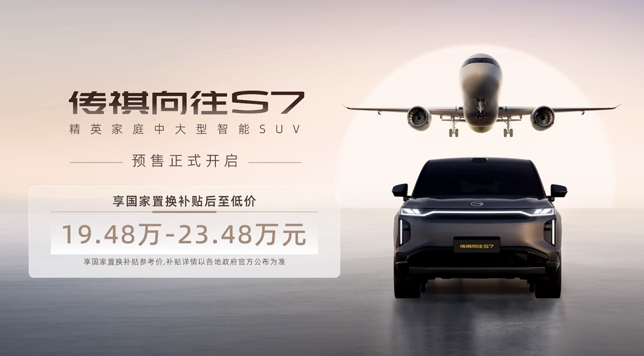 本次發(fā)布會(huì)跟C919同臺(tái)登場(chǎng)的傳祺向往S7,作為傳祺首款高階智駕車型正式開(kāi)啟預(yù)售,預(yù)售價(jià)格(國(guó)補(bǔ)后)為19.48萬(wàn)元-23.48萬(wàn)元。作為尖兵,傳祺向往S7已經(jīng)亮劍,也意味著傳祺的向上之路正式開(kāi)啟。