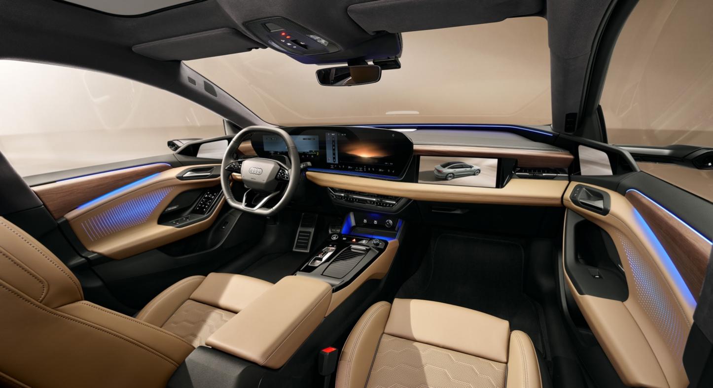 造型設(shè)計上,奧迪 A6L e-tron 憑借 0.22Cd 的超低風(fēng)阻系數(shù),演繹空氣動力學(xué)與美學(xué)的極致平衡。前臉通過纖細(xì)日間行車燈與寬大格柵,營造扁平寬闊視覺;凸起的“quattro blisters”以肌肉感線條彰顯 quattro 驅(qū)動屬性,搭配流暢線條,將空氣動力學(xué)效率與視覺張力融合,賦予車身蓄勢待發(fā)的力量感。奧迪 A6L e-tron大燈和尾燈采用三維設(shè)計,并提供動感數(shù)字燈光簽名,創(chuàng)造出物理世界和數(shù)字世界交相輝映的智能美感。