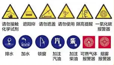 滅火器標(biāo)志必須貼在車(chē)門(mén)旁或廚房附近等滅火器存放處,要求標(biāo)志尺寸不小于10厘米見(jiàn)方,以確保在光線較暗的情況下也能快速找到;