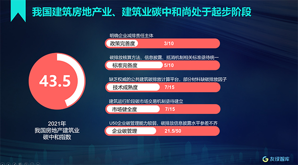日前,由友綠智庫主辦的2021房地產建筑業(yè)碳中和指數暨2021《中國綠色地產發(fā)展報告》發(fā)布會在京舉行。會議深度解讀了房地產建筑業(yè)在“雙碳”領域的政策、技術、標準、市場和企業(yè)的應對之策。