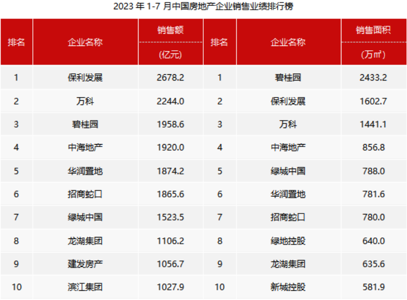 從企業(yè)表現(xiàn)來看,克而瑞報(bào)告顯示,2023年7月有逾8成百強(qiáng)房企單月業(yè)績環(huán)比降低,同比降低的企業(yè)在也占到近7成。具體來看,7月有超半數(shù)百強(qiáng)房企的單月業(yè)績同比降幅大于30%,其中36家企業(yè)同比降幅超過50%。但同時,也有一些企業(yè)的業(yè)績表現(xiàn)相對突出。如越秀地產(chǎn)、保利置業(yè)、華僑城、聯(lián)發(fā)集團(tuán)、大華集團(tuán)等房企7月單月業(yè)績?nèi)詫?shí)現(xiàn)同比增長。