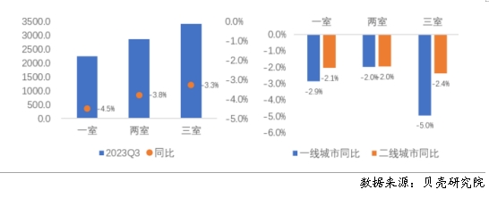 三、2023年三季度租賃住房成交結(jié)構(gòu)變化