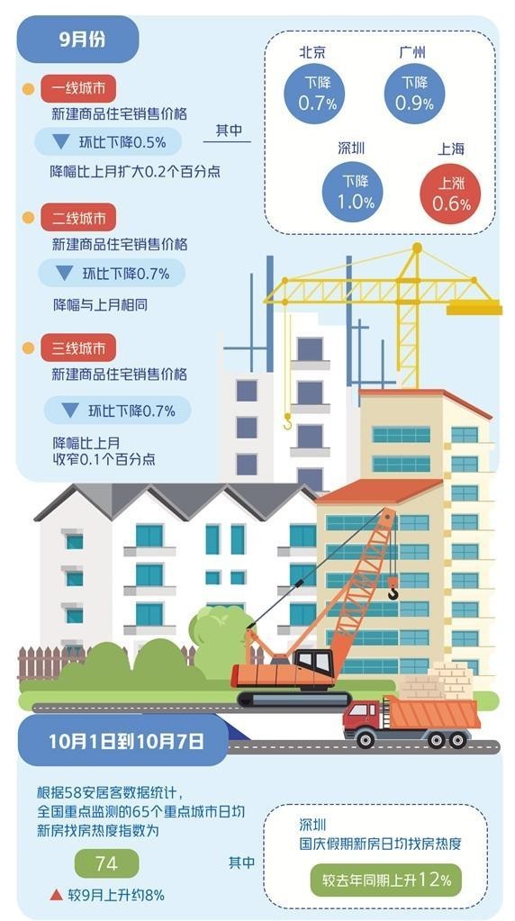 9月26日,中央政治局會議定調(diào)“要促進(jìn)房地產(chǎn)市場止跌回穩(wěn)”,釋放出“穩(wěn)地產(chǎn)”信號。隨后,一線城市集中優(yōu)化樓市政策,廣州全面取消限購,北京、上海、深圳優(yōu)化限購、限貸政策,北京、上海明確將及時(shí)取消普宅認(rèn)定標(biāo)準(zhǔn),深圳取消限售,上海、深圳增值稅免征年限“5改2”,帶動國慶假期樓市熱度顯著提升。