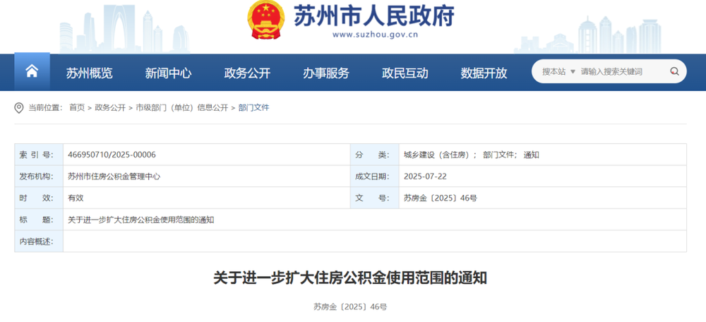 8月12日,蘇州市住房公積金管理中心發(fā)布了《關于進一步擴大住房公積金使用范圍的通知》,自9月1日起正式施行。