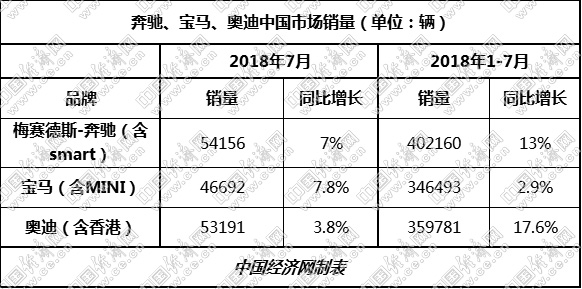 就數(shù)據(jù)而言,ABB三家無論是7月當(dāng)月還是前7月,均保持著正向增長。其中,奔馳、寶馬給出的定義是“穩(wěn)健”、“平穩(wěn)”增長,奧迪則是收獲了“在華最好7月”。在競爭格局上,三家品牌也并未有大的變化,依舊維持著年初以來的座次:奔馳繼續(xù)保持領(lǐng)先,奧迪加速追趕,寶馬則是按照既定目標一路向前。