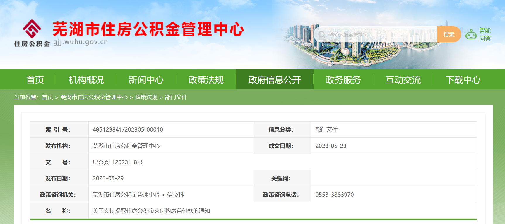 央廣網(wǎng)北京5月29日消息 據(jù)安徽省蕪湖市住房公積金管理中心網(wǎng)站消息,為支持剛性住房需求,蕪湖市住房公積金管理中心近日發(fā)布《關(guān)于支持提取住房公積金支付購房首付款的通知 》(以下簡稱《通知》)。
