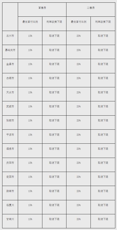 | 甘肅取消首套、二套房貸利率政策下限 |