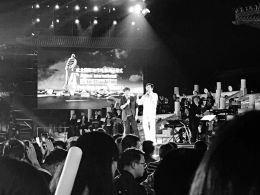 成龍國際動作電影周開幕式現(xiàn)場,成龍、周華健與觀眾互動。