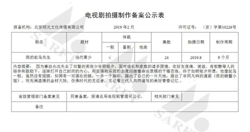 由含胭創(chuàng)作的言情小說(shuō)《我的鴕鳥(niǎo)先生》將拍劇版,該劇將拍24集,拍攝周期8個(gè)月。電視劇內(nèi)容與小說(shuō)有所區(qū)別,講述了失去雙臂的少年顧銘夕,在好友們的幫助下打開(kāi)內(nèi)心的故事。小說(shuō)《陪你到世界終結(jié)》也將拍劇版,該劇將拍26集,拍攝周期3個(gè)月。