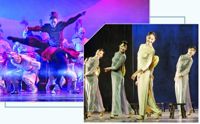 舞劇《永不消逝的電波》(以下簡稱《電波》)中,蘭芬身著旗袍,輕搖蒲扇,舞起曼妙的《晨光曲》;《花木蘭》里,女將軍卸下戎裝再執(zhí)銅鏡,用《銅鏡舞》表達對“美”的天然盼望;《杜甫》中的《麗人行》盡顯盛唐雍容華貴,還原詩中的“態(tài)濃意遠淑且真,肌理細膩骨肉勻”。