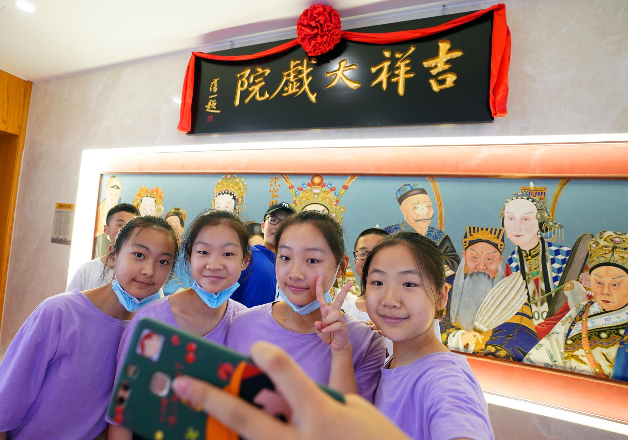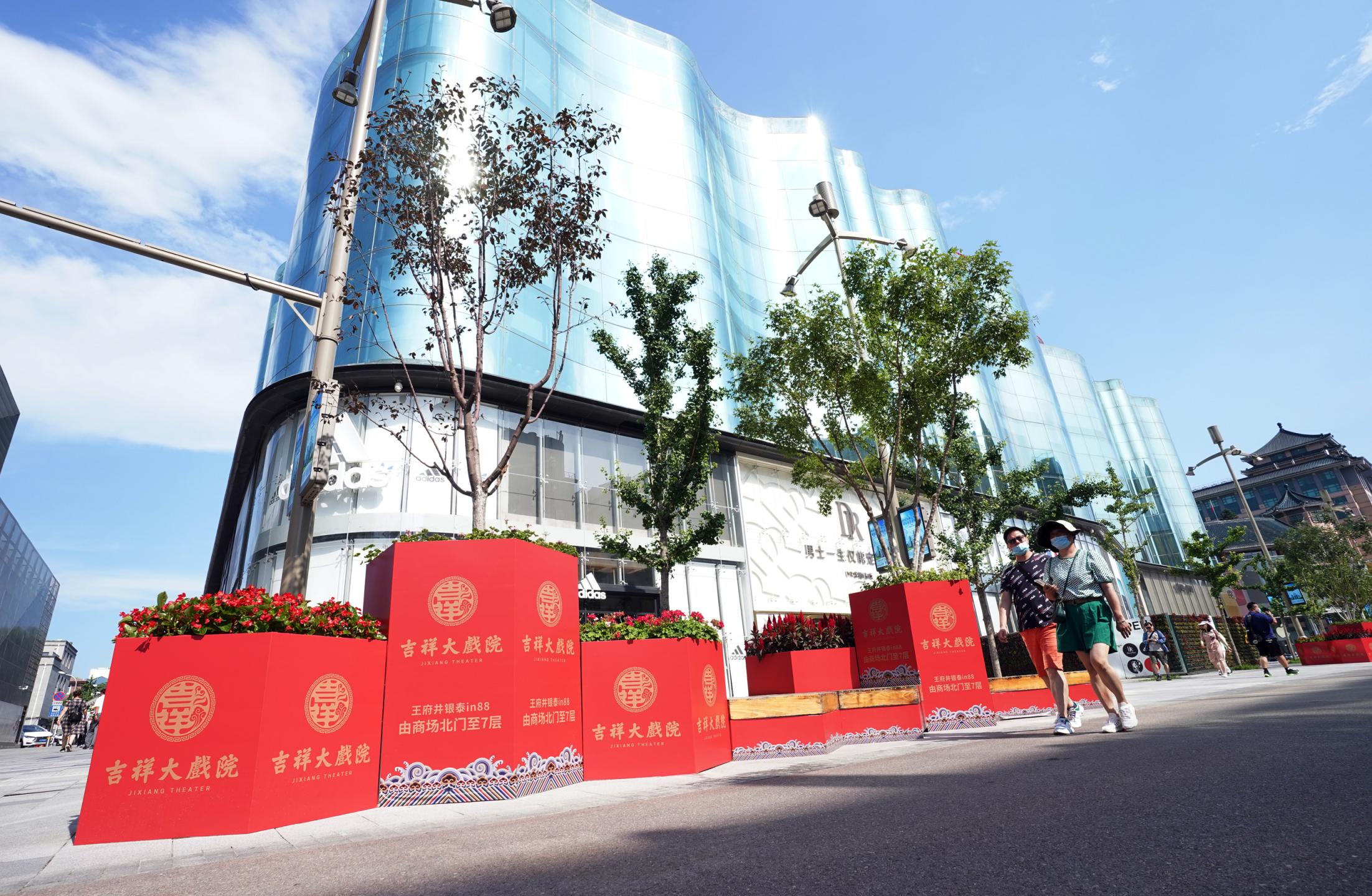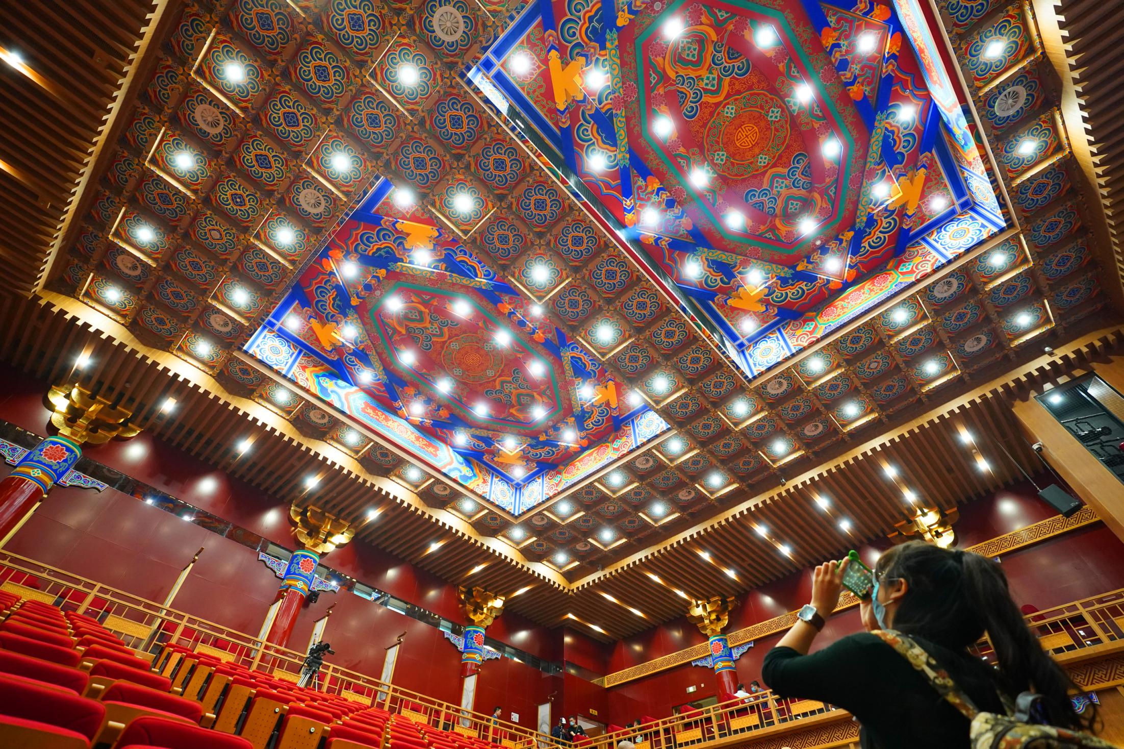 2021年7月9日,時隔28年,由北京市文化和旅游局、北京市國有資產(chǎn)經(jīng)營有限責任公司共同出資,北京京劇院、北京市演出有限責任公司共同運營的吉祥大戲院重張啟幕。這座“藏身”于銀泰in88大廈7層、8層的空中戲院占地面積達4000平方米。乘電梯上樓,初入眼簾的前廳清新雅致,落地窗外可見王府井熙攘的人群與遠處故宮、景山等古都風光;劇場內(nèi),明清風格古樸莊重,藻井彩繪繁復斑斕,傳統(tǒng)的“旋子彩繪”上增加了大量寓意吉祥的“萬字不到頭”圖案,與戲院的名字彼此呼應(yīng)。