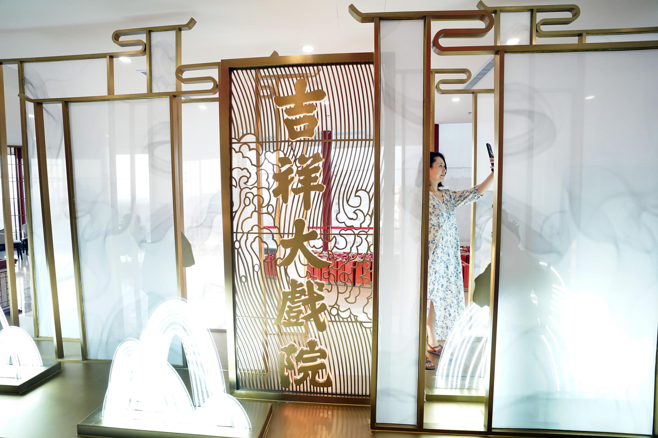 “在燈光、音響設(shè)備方面,新建成的吉祥大戲院運用了很多‘黑科技’,再加上特殊的裝修和裝飾,構(gòu)建起了聲場上的原聲劇場,演員表演可以不戴麥克風?!奔榇髴蛟憾麻L富博洋說。這里并非當下常見的大型扇形劇場,長方形的空間里,300多個座席分為上下兩層,觀眾無論坐在哪一排,與舞臺之間的距離都不算遠。