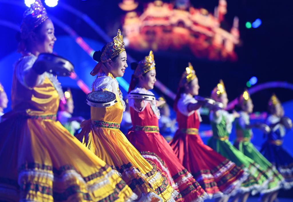 9月10日,參加展演活動(dòng)的廣場(chǎng)舞團(tuán)隊(duì)在表演。新華社記者 趙子碩 攝
