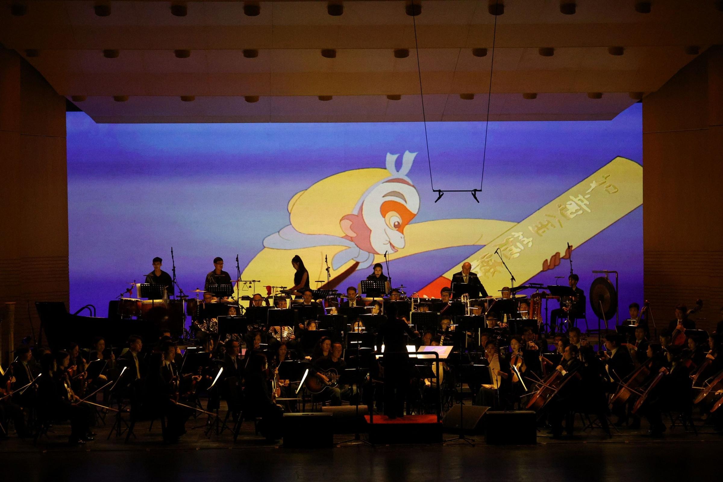1922年,萬氏兄弟創(chuàng)作出中國首部動畫短片《舒振東華文打字機(jī)》,開啟了中國動畫新時(shí)代。轉(zhuǎn)眼間,百年已過,為紀(jì)念中國動畫的傳承發(fā)展,交響舞曲《大鬧天宮》的創(chuàng)作由此發(fā)軔。這部作品以《大鬧天宮》動畫片為基礎(chǔ),共分為“花果山美猴王”“東海得金箍棒”“官封弼馬”等9個(gè)樂章,用樂隊(duì)演奏配合影片播放的方式講述了孫悟空怒反天庭這段家喻戶曉的神話故事。