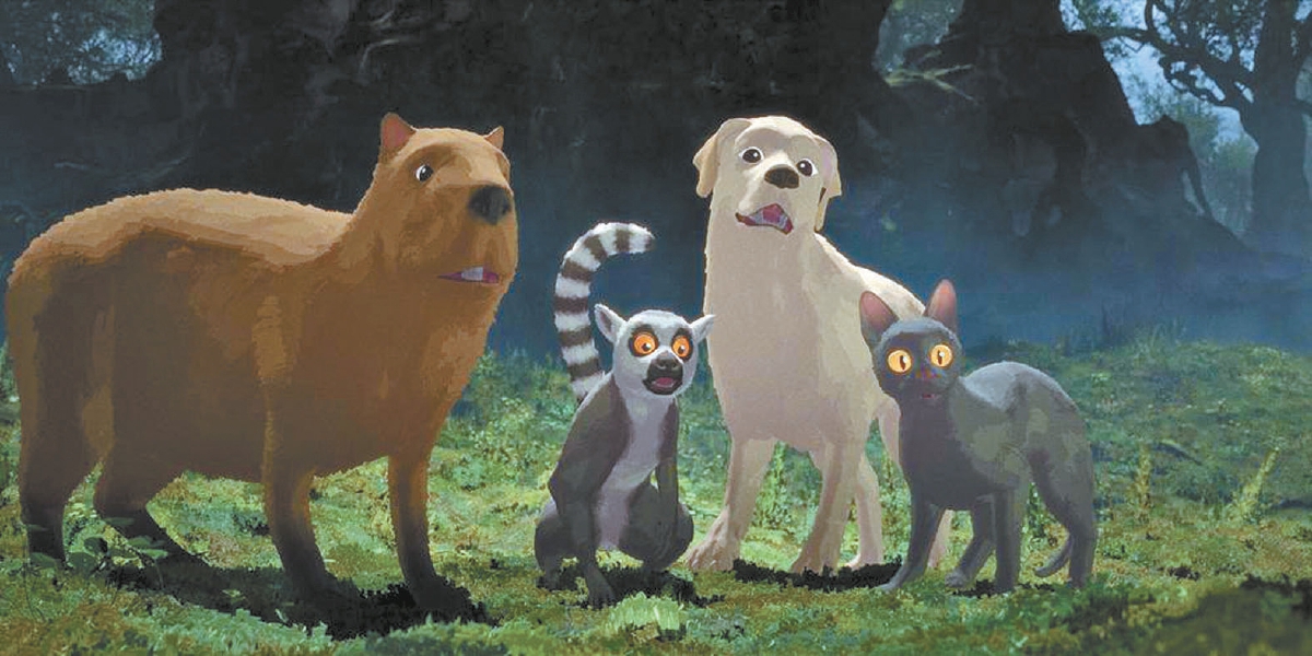 除此之外,片中一切的動物形象及發(fā)聲,都來自導(dǎo)演金茲持續(xù)多年的認(rèn)真研究。這位拉脫維亞導(dǎo)演作為一名貓狗雙全的“鏟屎官”,自然熟知小黑貓和拉布拉多犬的習(xí)性;而卡皮巴拉、環(huán)尾狐猴和蛇鷲的神態(tài)、行為和聲音,則全部來自他守在動物園的觀察記錄。導(dǎo)演本來還打算將現(xiàn)實中鯨魚的素材轉(zhuǎn)入blender(一款免費開源三維圖形圖像軟件)進(jìn)行渲染,但后來還是沒忍住加了些人為設(shè)計,將其更加神秘化了。