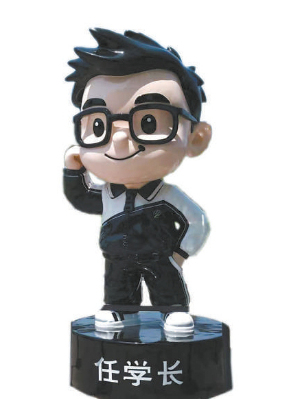 走進(jìn)北海公園南門,步行沒(méi)多遠(yuǎn),就能看見(jiàn)一個(gè)兩人高的公仔矗立湖邊。公仔底座上寫著“任學(xué)長(zhǎng)”,他戴著黑框眼鏡,弧形上翹的嘴型仿佛向游客笑著問(wèn)好,沿著它背后的湖水碧波望去,遠(yuǎn)處就是北海的白塔,為寧?kù)o典雅的古典園林增添了一絲可愛(ài)氣息。