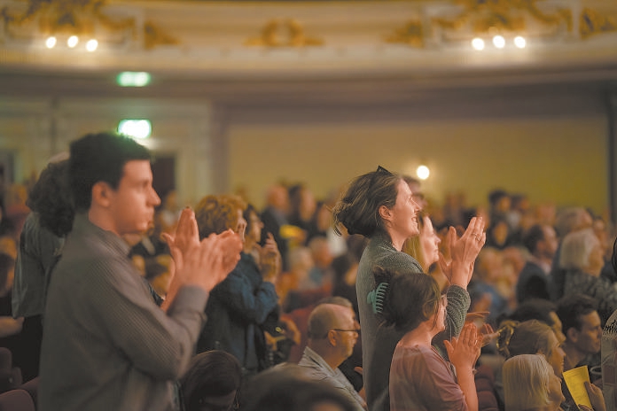 英國(guó)愛丁堡亞瑟音樂廳里,觀眾為中國(guó)國(guó)家大劇院管弦樂團(tuán)起立鼓掌。牛小北攝