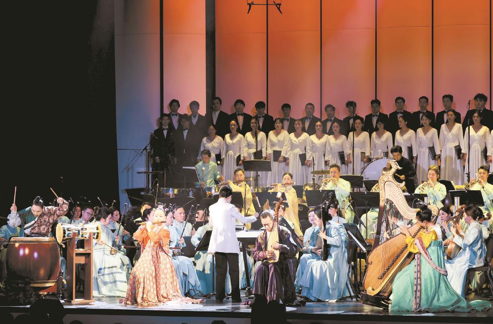 作曲家孔志軒分享了演出細(xì)節(jié),此次他優(yōu)化了第五與第六篇章?!暗谖迤隆讹L(fēng)骨錚鳴》擴(kuò)充原有結(jié)構(gòu),層層遞進(jìn)間讓風(fēng)骨內(nèi)涵更立體豐滿(mǎn);第六篇章《星河共潮》則精簡(jiǎn)結(jié)構(gòu),凝練打磨各部分音樂(lè)形象,核心是凸顯中華民族屹立不倒的民族氣節(jié)?!?/p>