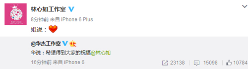 林心如與霍建華劇照 中新網(wǎng)5月20日電今日,霍建華工作室官方微博發(fā)布一條消息,稱“華說:希望得到大家的祝福?!辈亓肆中娜纭kS后,林心如工作室官方微博轉(zhuǎn)發(fā)微博,發(fā)表紅心默認(rèn)。 網(wǎng)友紛紛表示祝福:“般配,兩個(gè)人都低調(diào)奢華有內(nèi)涵”,“兩人美貌相當(dāng),配一臉”,還有網(wǎng)友調(diào)侃:“胡歌怎么辦?!? (責(zé)任編輯:武丹) |