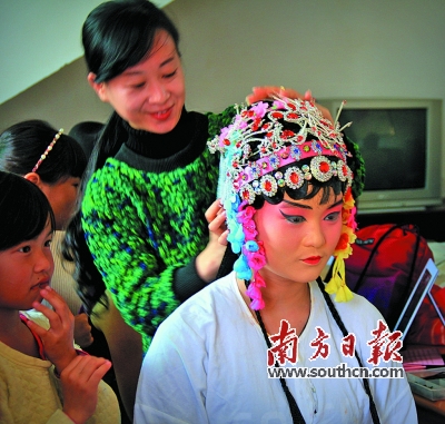 演出前的準(zhǔn)備精益求精,引起了小朋友對(duì)廣東漢劇的興趣。