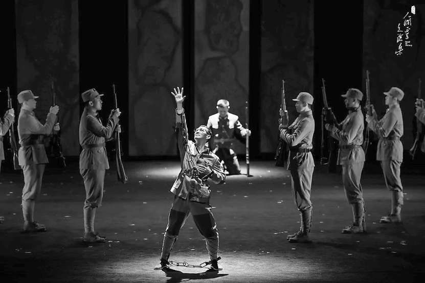 該劇運用了大量真實的歷史影像和聲音資料,音樂亦磅礴大氣、高潮迭起,增強了舞臺感染力。美中不足的是,或許是由于時長限制,刪減后的部分劇情銜接稍顯突兀,例如瞿霞為何入獄八年,楊立青為何與瞿恩的遺孀林娥結(jié)婚,內(nèi)容交代顯得急促。在重大歷史事件背景的介紹方面,運用文字投屏固然能夠提高敘事效率,但也需要稍作節(jié)制。但整體看,該劇還是展現(xiàn)出了對藝術(shù)審美的不懈追求,用心用情地譜寫了一曲理想與信念之歌。