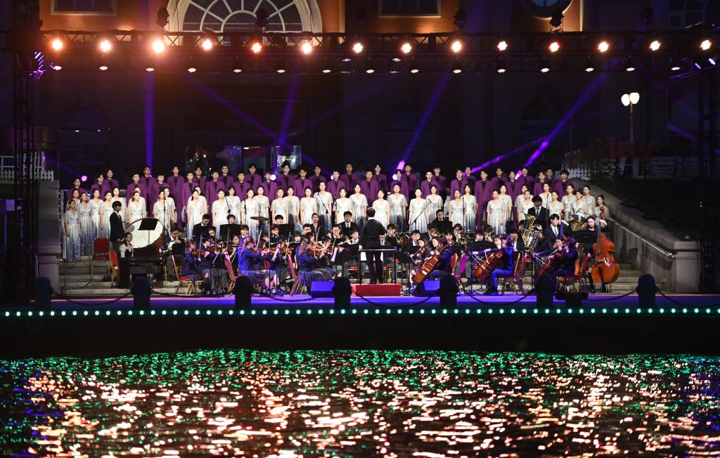 6月,一場(chǎng)音樂(lè)會(huì)在天津海河意風(fēng)區(qū)碼頭附近舉行。新華社記者 趙子碩 攝