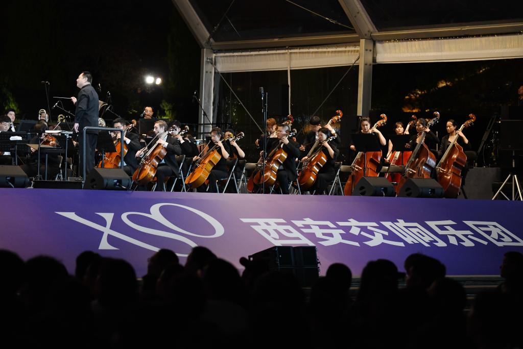 10日晚,2023西安交響樂團(tuán)大雁塔戶外公演在西安市大雁塔北廣場舉行。這場免費(fèi)戶外公演同時(shí)也通過網(wǎng)絡(luò)平臺進(jìn)行線上直播,讓廣大西安市民、游客和網(wǎng)友同享一場戶外大型古典音樂盛宴。