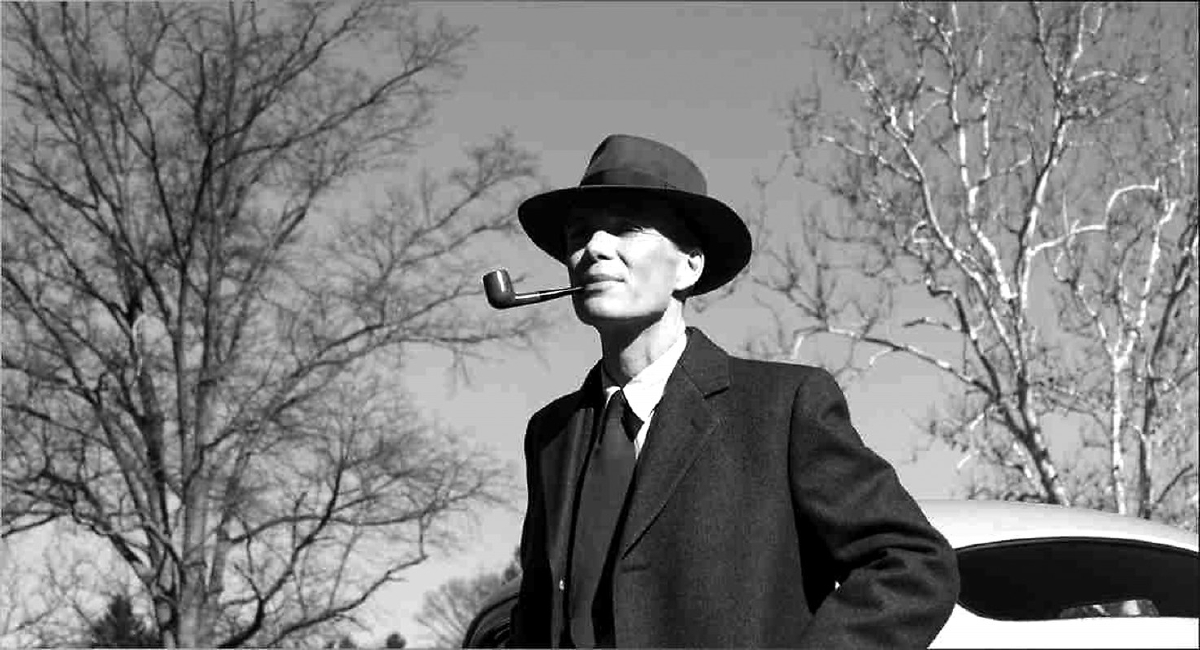 奧本海默被稱作“美國的普羅米修斯”,影片也是從這個典故開局的,這意味著奧本海默不僅向榮耀進發(fā),還將經(jīng)受普羅米修斯式的懲罰與煎熬。奧本海默曾在電視節(jié)目中眼瞼低垂地說:“我現(xiàn)在成了死神,世界的毀滅者!”是的,人類自他開始,擁有了自毀的能力。不過諾蘭并沒有過于渲染這種負(fù)面情緒,除了演講時閃過的錯覺,以及聽證會上赤裸裸的幻象,奧本海默大多時候都是率性而為,或麻利利的,哪怕后期的憂郁深邃中,也不乏風(fēng)骨。影片對歷史的關(guān)鍵節(jié)點和細節(jié)不遺余力,但對鏡像中走來的歷史人物又是呵護有加,以至于看上去,他更像是諾蘭的奧本海默——一個比奧本海默還奧本海默的奧本海默。
