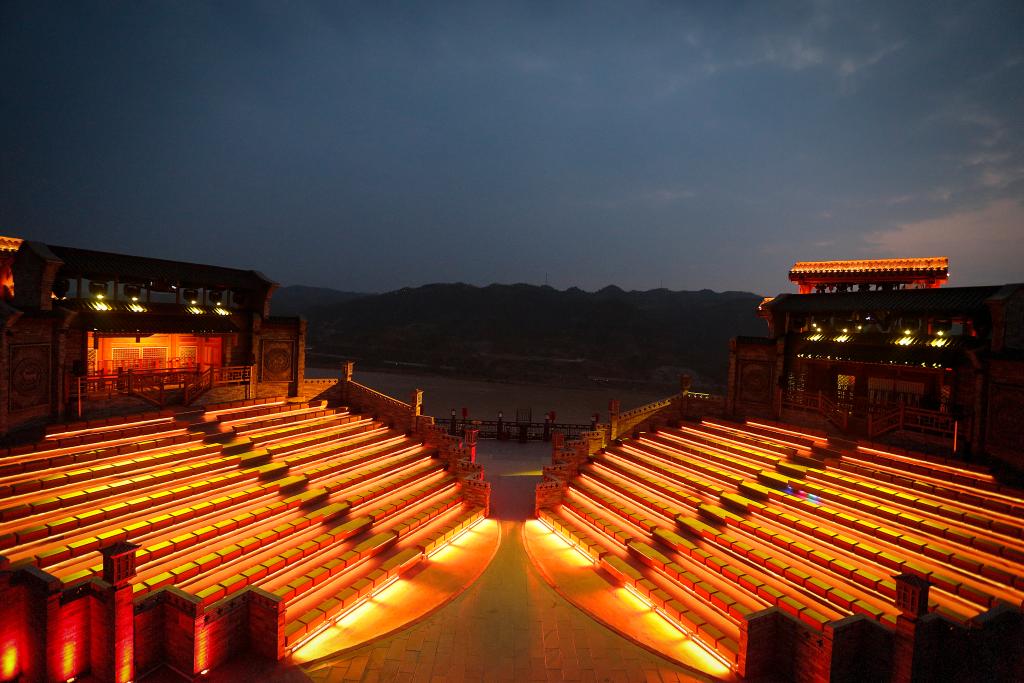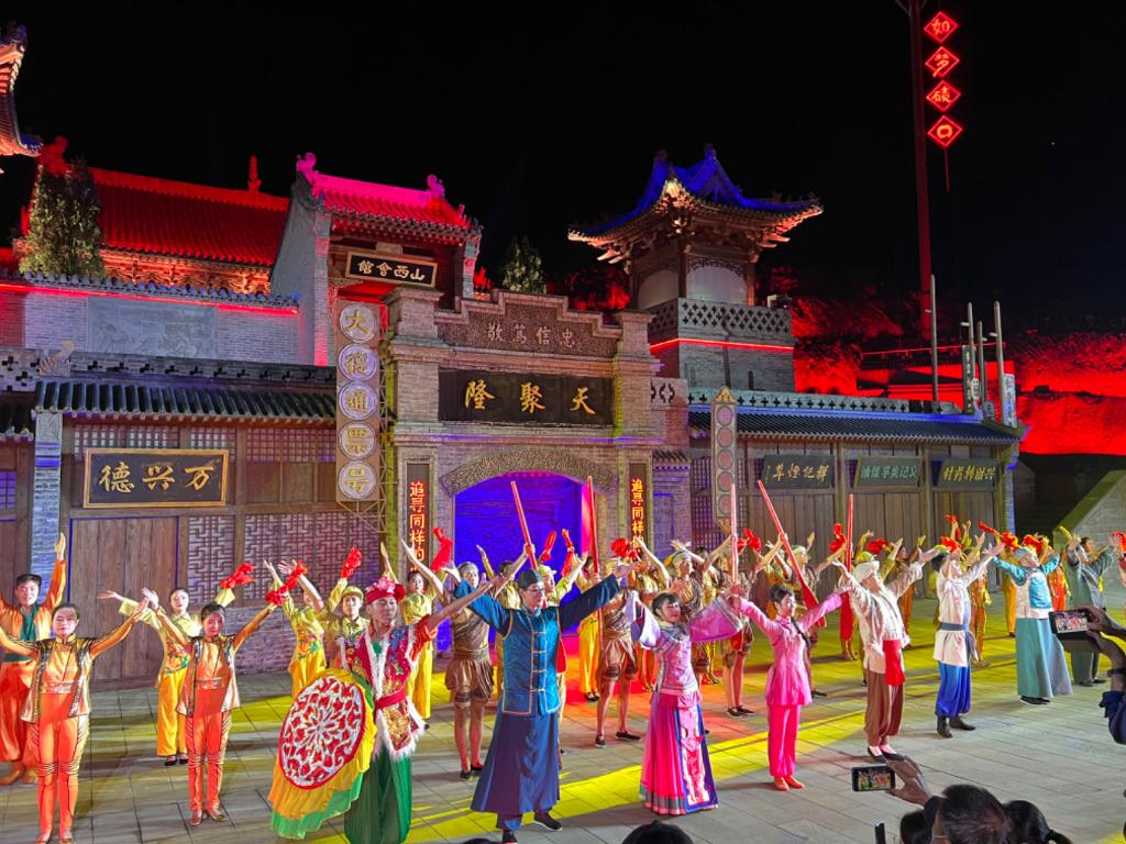 演出劇場在黃河岸邊。(受訪者供圖) 這是一場別樣的演出,山水和風(fēng)情在劇場里交相輝映。在“九曲黃河第一鎮(zhèn)”的磧口岸邊,在黃土高原呂梁山脈的懷抱里,觀眾坐在360度的露天旋轉(zhuǎn)觀演臺上,高科技舞臺技術(shù)和燈光投影矩陣的加持下,現(xiàn)代演藝手段和傳統(tǒng)文化相互融合。演員表演生動投入,將黃河文化、晉商文化、民俗文化、紅色文化潤于觀眾心中。 來自山東的彭女士被這樣一場別樣的實景演出深深震撼?!懊媲熬褪屈S河,我感覺自己就是故事里的一員,能夠很真實地調(diào)動情緒。還看到了很多有特色的民俗元素,讓我更加深入了解這里的歷史文化?!彼f。 臨縣如夢磧口文化旅游產(chǎn)業(yè)有限公司總經(jīng)理張煒如告訴記者,自2020年9月28日首演以來,已演出380余場,近10萬人次觀演。今年中秋國慶假期期間,每晚演出增至兩場,日觀演人次達(dá)800人左右,很多游客慕名前來,在黃河邊體驗“黃河情”。
