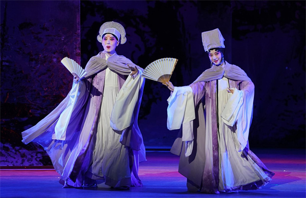 施夏明、單雯兩位昆曲名角的演唱更是爐火純青,動人心魄。伴隨著清婉動人、中西融合的音樂旋律,在至幻至美的舞臺上,真摯熾熱的動人情感化為婉約優(yōu)美的昆曲曲牌,既充滿了生活的精致與情趣,又超越了塵世的喧囂和煙火之氣。當沈復和蕓娘離別時,悲慟情境隨著唱詞和曲調(diào)的一唱三嘆無限放大,散發(fā)出強大的感染力。而當“余韻”尾聲,沈復和蕓娘攜手走向遠方,走進書中,又留給人們無盡的想象和感動。